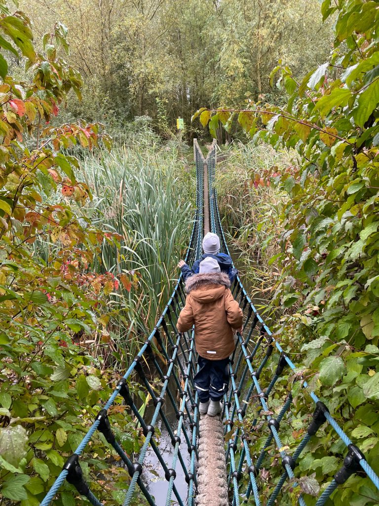 Clementspolder: Dieses kleine Gebiet ist Teil des Groesen Polders und ein kurzweiliger Ausflug für Kinder. Es gibt ein Schleppfloß, eine Hängebrücke und mehrere Holzdecks. Überall laufen Kaninchen (oder sind es Hasen?) frei herum.